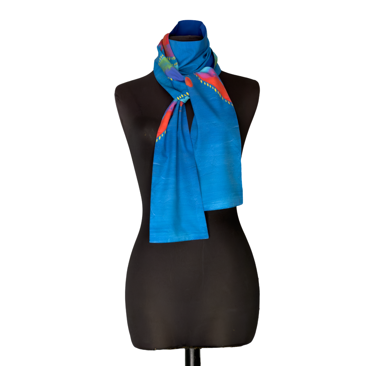 This smaller wearable art scarf is created from my original paintings and designed to drape with ease. Printed on light weight polyester - yes, it’s washable! - it features fluid movements, rich colors and a refined silhouette that transitions effortlessly from day to evening.