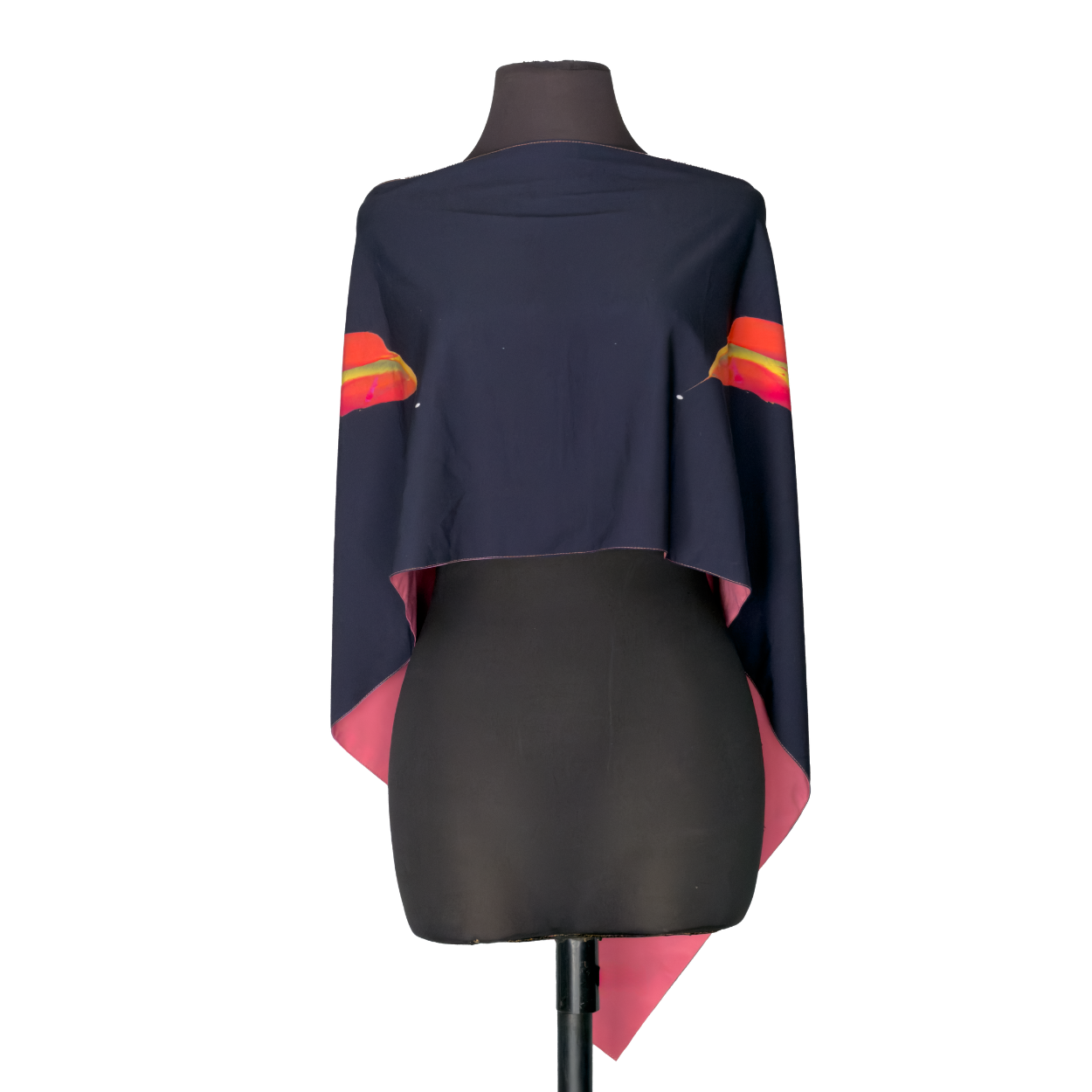 The Janine top is the statement piece of the collection - bold, fluid and beautifully dramatic. Designed as a one-size-its-all, it transforms effortlessly: wear it across the chest for a modern silhouette, draped off the shoulders to showcase the contrast color, or to the side as a shawl that stays perfectly in place.