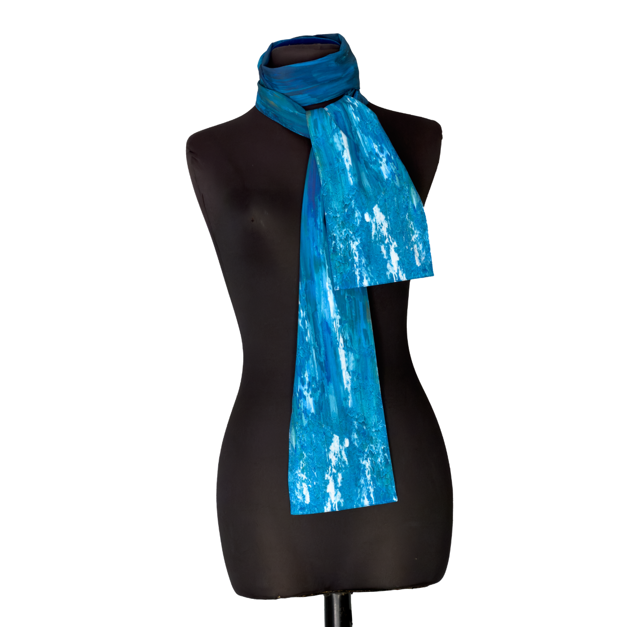 This smaller wearable art scarf is created from my original paintings and designed to drape with ease. Printed on light weight polyester - yes, it’s washable! - it features fluid movements, rich colors and a refined silhouette that transitions effortlessly from day to evening.